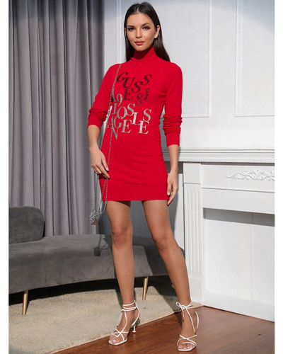 پیراهن یقه اسکی گلدوزی و کار شده با نگین GUESS